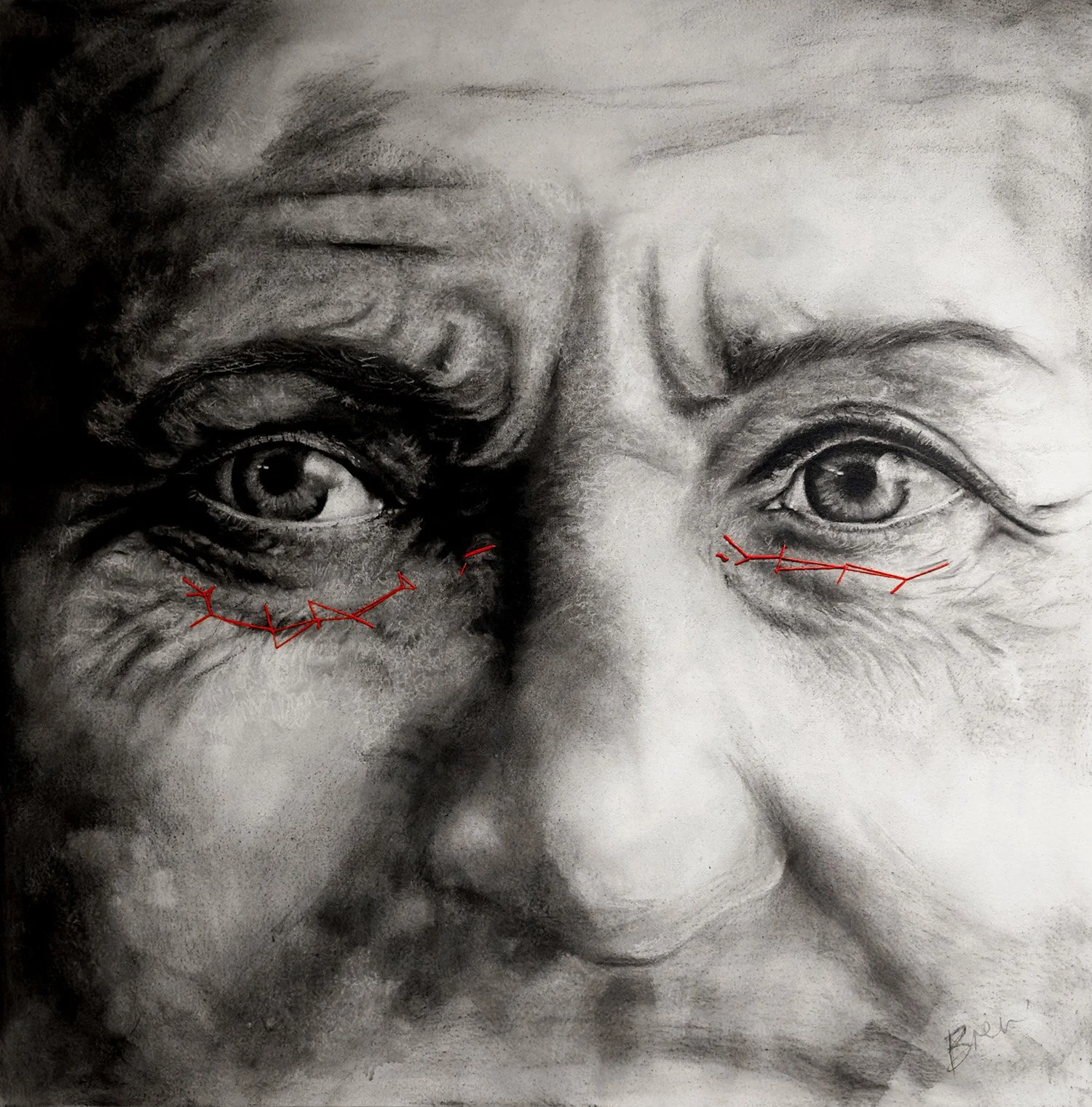 I specialize in charcoal on canvas. It's a rich, expressive medium that allows for both delicate detail and bold texture.